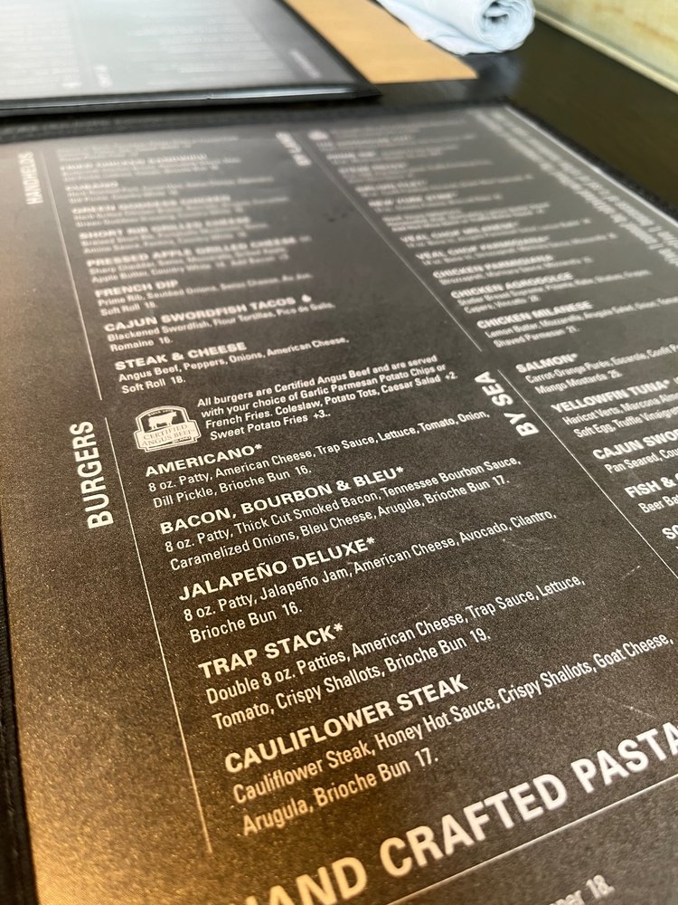 Double oz patties, American cheese, Trap sauce, lettuce, tomato, crispy shallots, brioche bun. Items that are raw or partially cooked can increase your risk of foodborne illness. Consumers who are especially vulnerable to foodborne illness should only eat seafood and other food from animals thoroughly cooked.