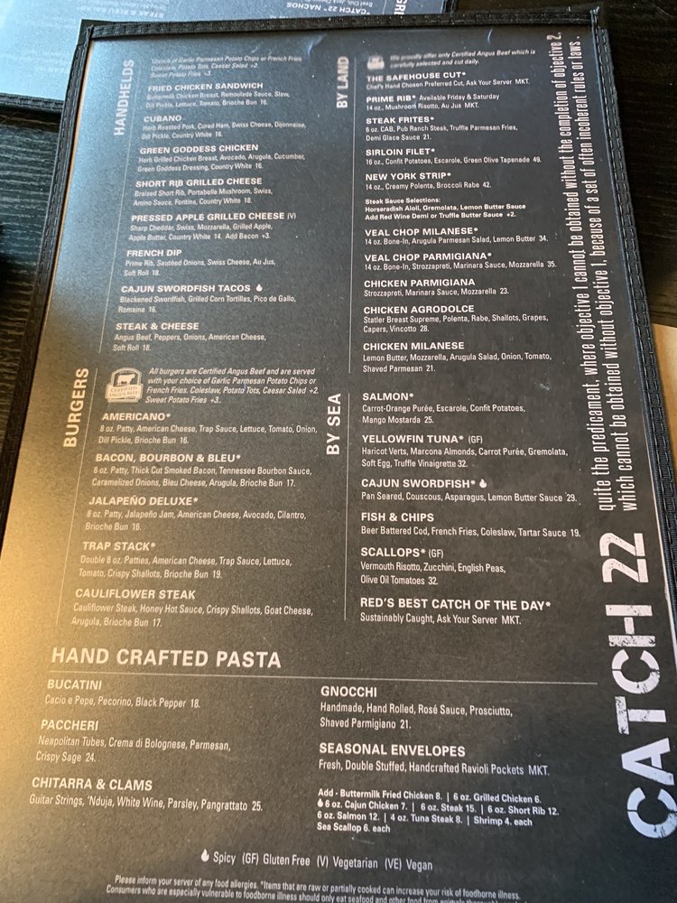 oz New York Strip, cacio e pepe potatoes, creamed spinach. (Gluten Free) Items that are raw or partially cooked can increase your risk of foodborne illness. Consumers who are especially vulnerable to foodborne illness should only eat seafood and other food from animals thoroughly cooked.